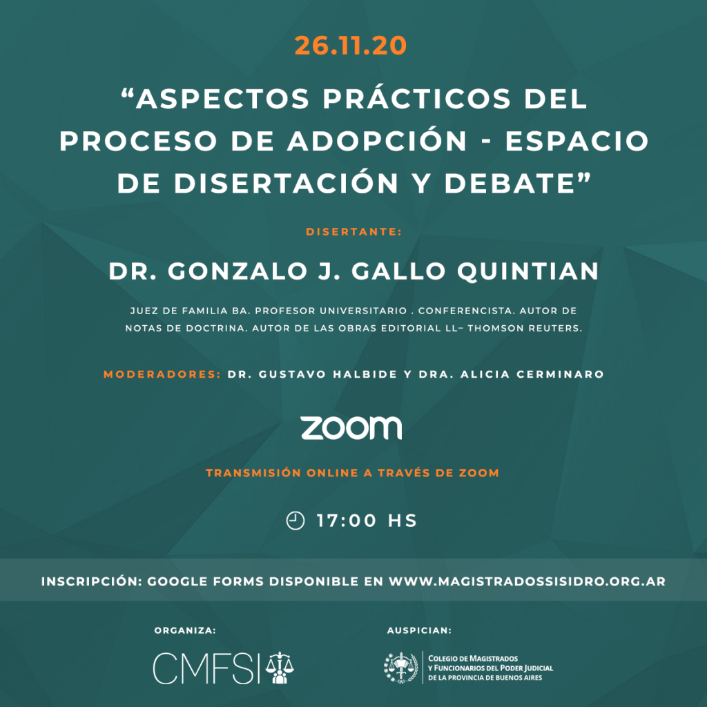 26.11.20 – “ASPECTOS PRÁCTICOS DEL PROCESO DE ADOPCIÓN – ESPACIO DE DISERACIÓN Y DEBATE”
