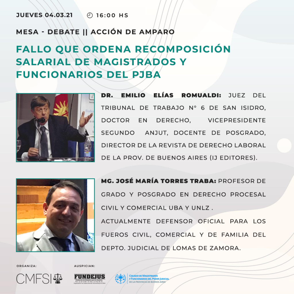 04.03.21 – MESA DEBATE || ACCIÓN DE AMPARO: Fallo que ordena recomposición salarial de Magistrados y Funcionarios del PJBA.