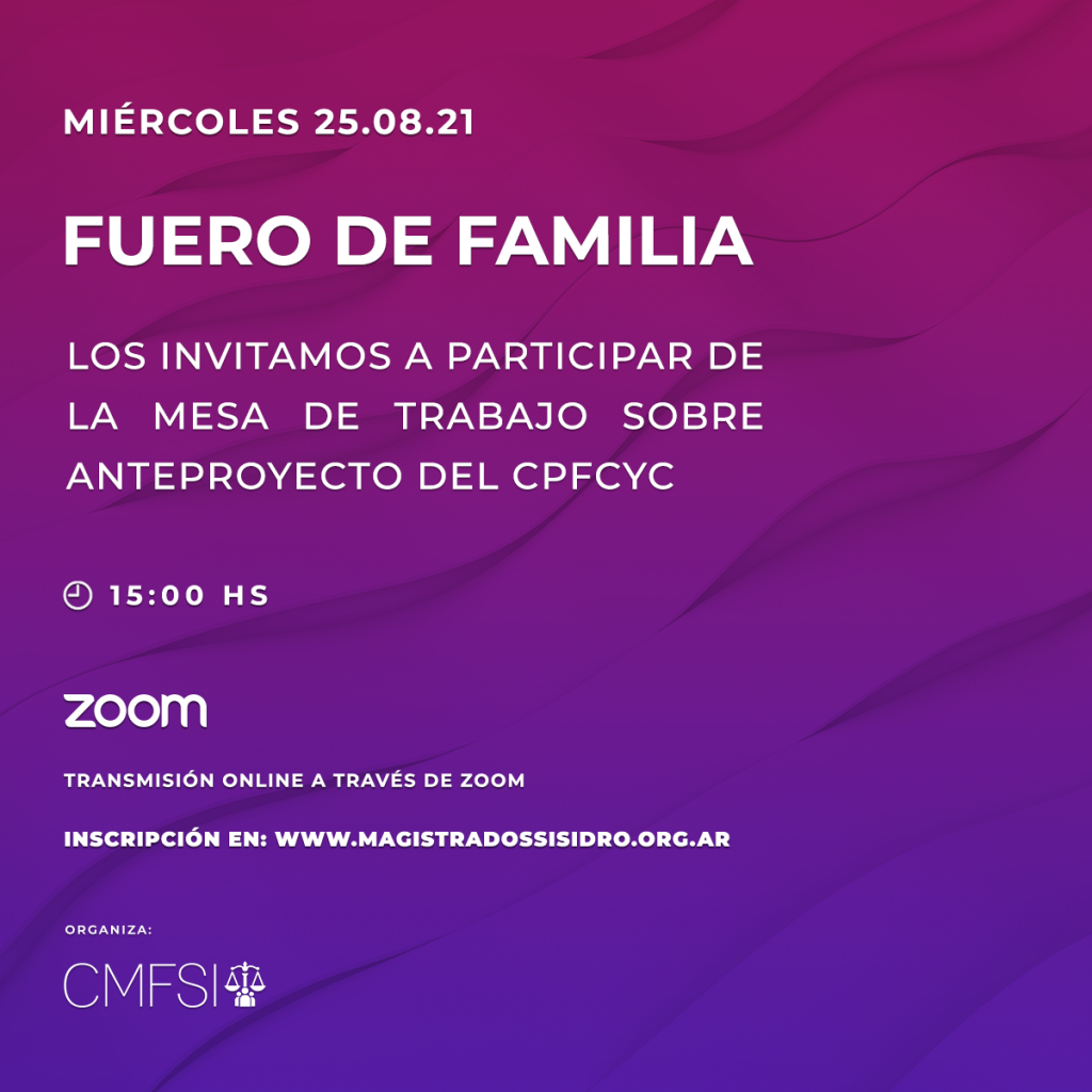 25.08.21 – FUERO DE FAMILIA – MESA DE TRABAJO SOBRE ANTEPROYECTO DEL CPFCYC
