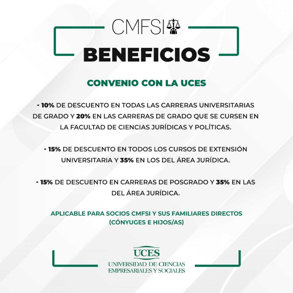 Descuentos aplicables para socios CMFSI y sus familiares directos en cualquier sede de la UCES.
