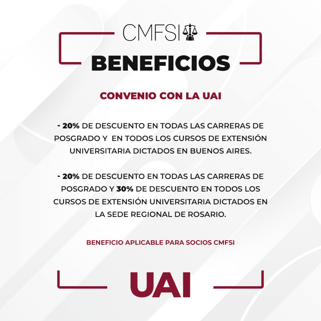 Descuentos aplicables para socios CMFSI en las sedes de Buenos Aires y Rosario.