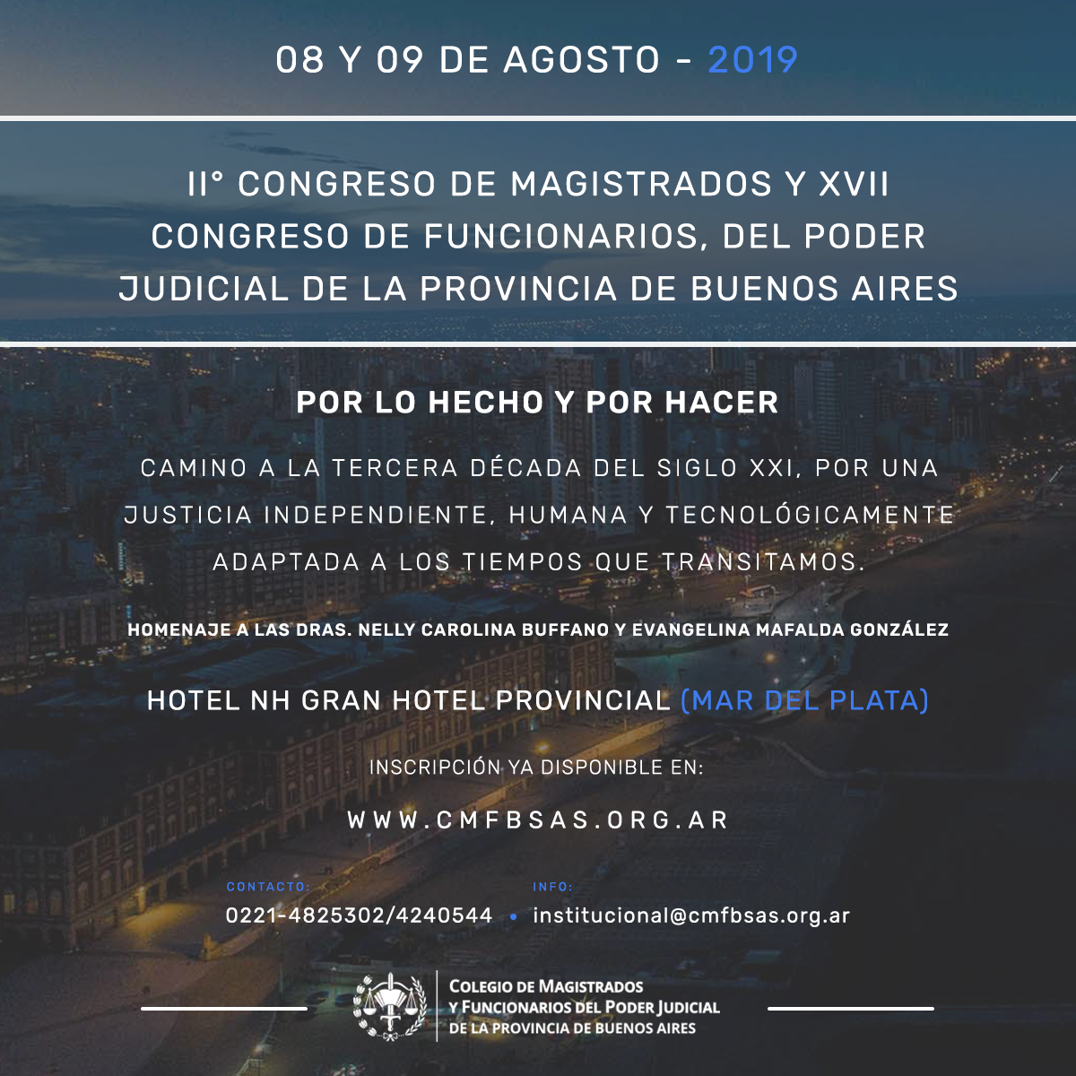 CONGRESO MAGISTRADOS Y FUNCIONARIOS – MDQ 08 Y 09 DE AGOSTO